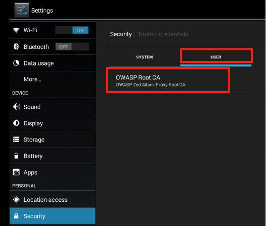 When you are not using the device to test, remove the certificate. To remove the certificate, go to the Settings --> Security --> Trusted credentials --> User dialog.